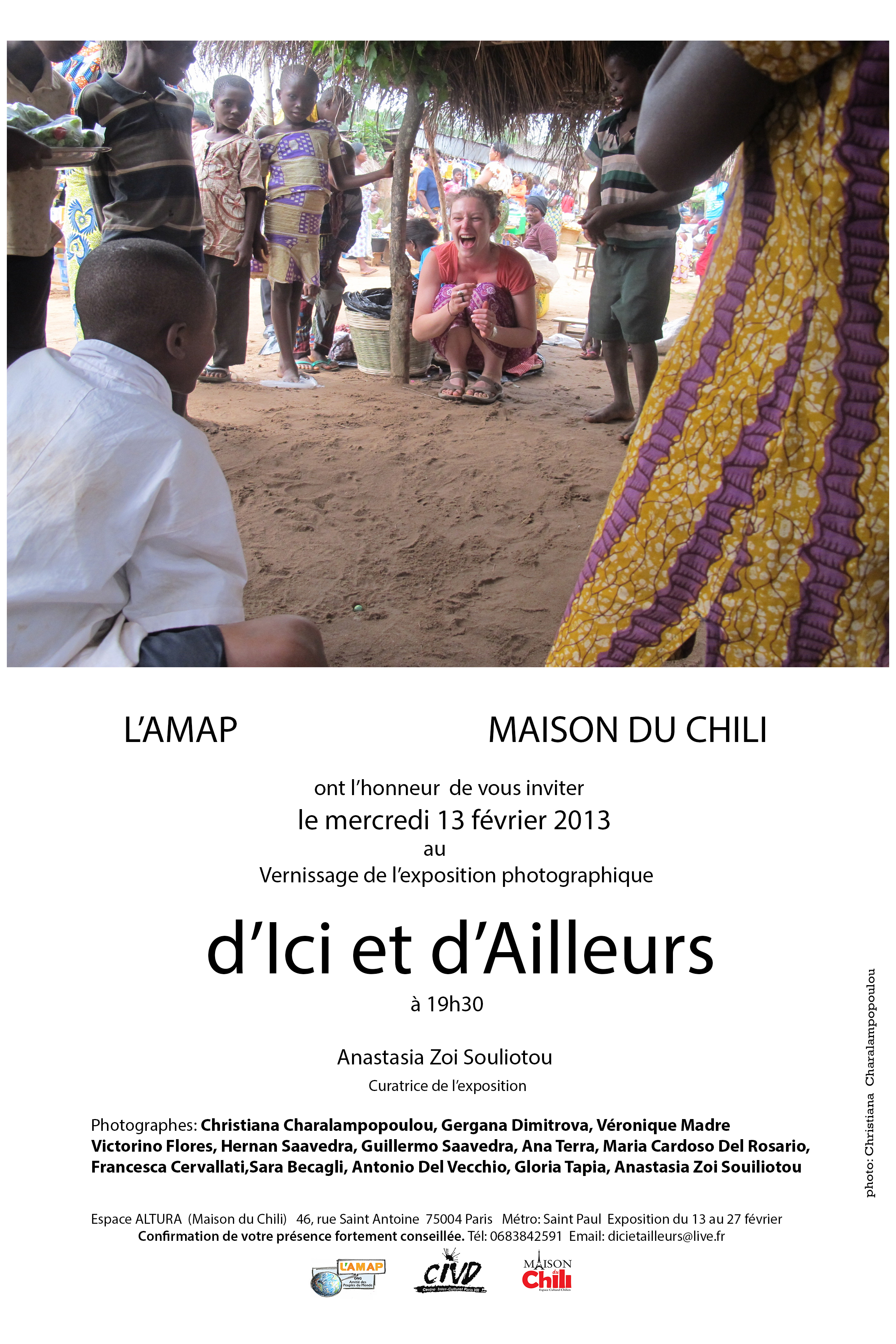 Nous remercions très chaleureusement la Maison du Chili d’accueillir notre exposition intitulée « D’Ici et d’Ailleurs », la première exposition des membres actifs de l’AMAP et du CIVD. L’interculturalité est l’axe majeur de cette exposition dans l’esprit des finalités de l’AMAP et du CIVD.