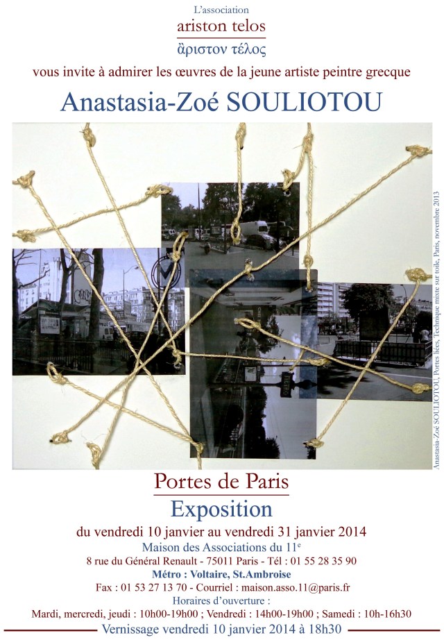 Inspirée par les Portes de Paris Anastasia Zoé SOULIOTOU crée des nouveaux tableaux de peinture en jouant avec la forme et la notion de la « Porte ». Plus qu’entrées/sorties de la ville de Paris les Portes sont présentées comme des lieux multi-niveaux qui se transforment par l’intervention de l’artiste.