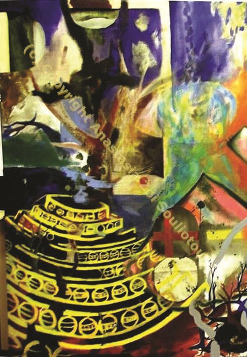 Anastasia Zoé SOULIOTOU, derrière le jaune, pigments sur toile, 1.20m x 1.80m, 2007