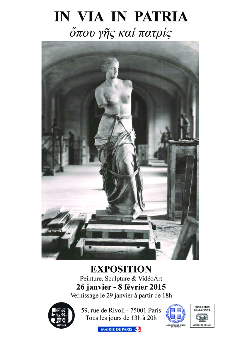 Dans l’exposition IN VIA IN PATRIA όπου γης και πατρίς[1], trois artistes grecs et un artiste français tissent leur fil d’Ariane jusqu’au cœur de Paris, pour présenter des œuvres provenant de leurs voyages et séjours dans différents pays européens.