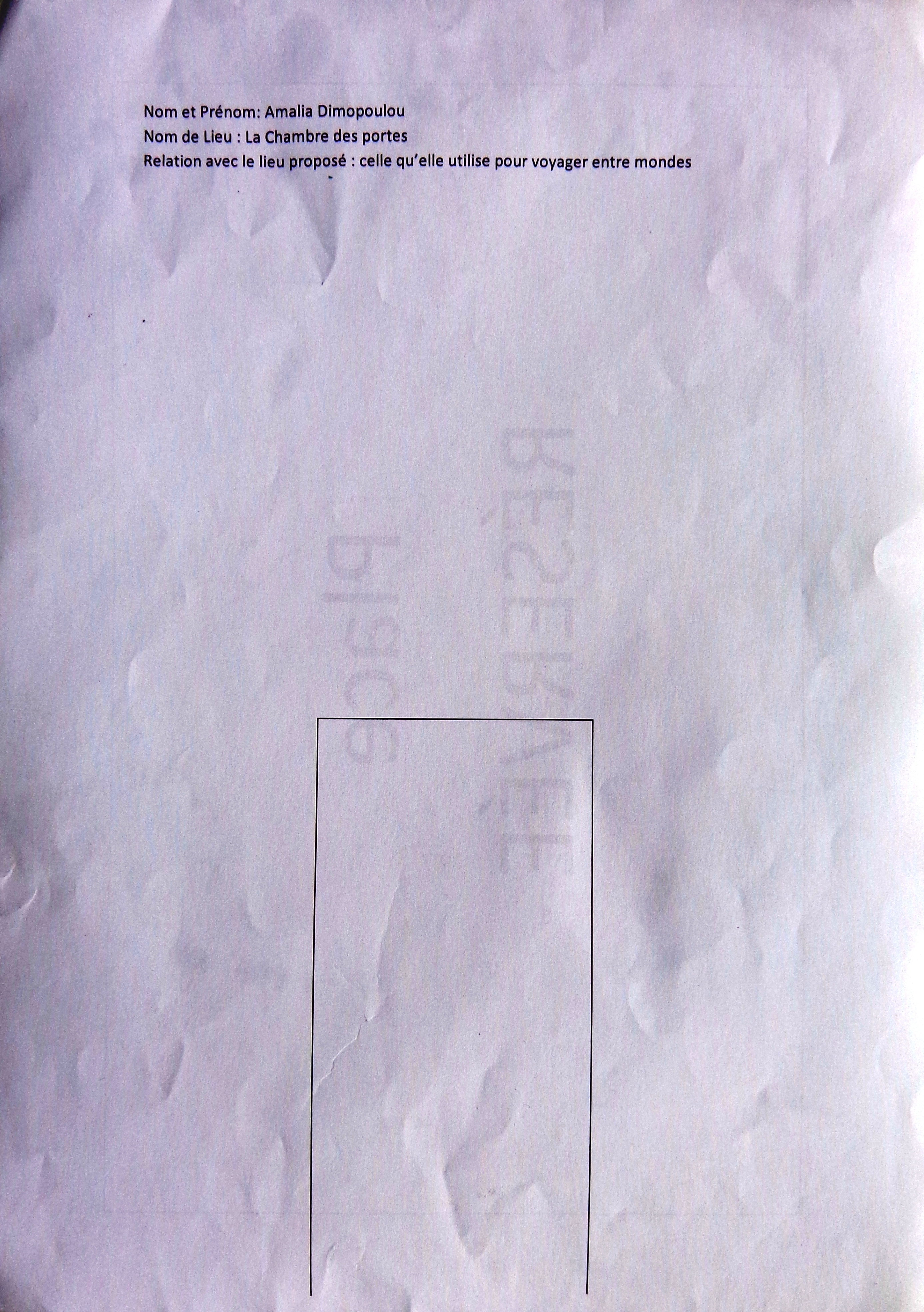 - prénom et nom: Amalia Dimopoulou, Lieu: La Chambre des portes (celle qu’elle utilise pour voyager entre mondes)