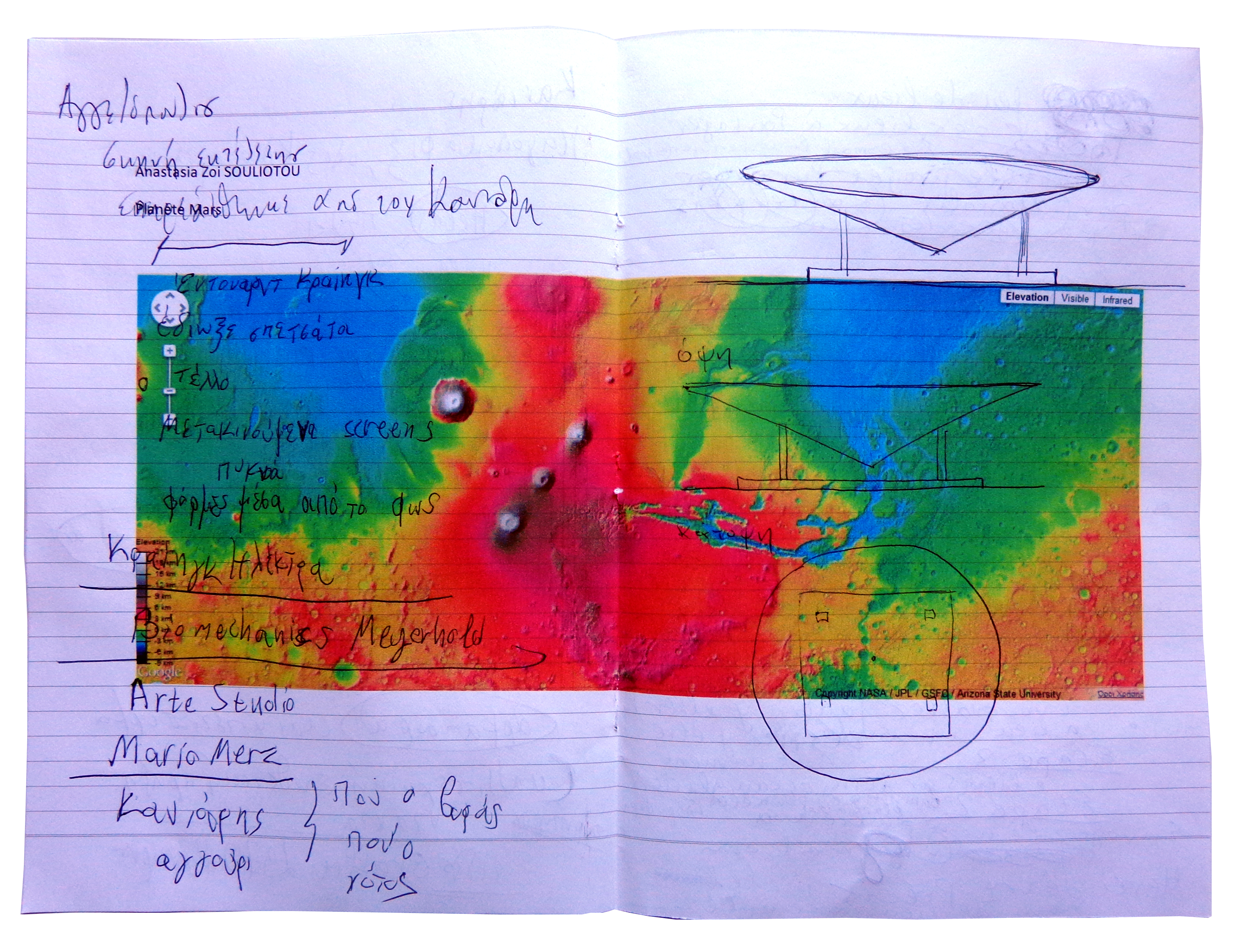 Matériaux: Impression numérique d’image de Google Mars sur page des notes personnelles