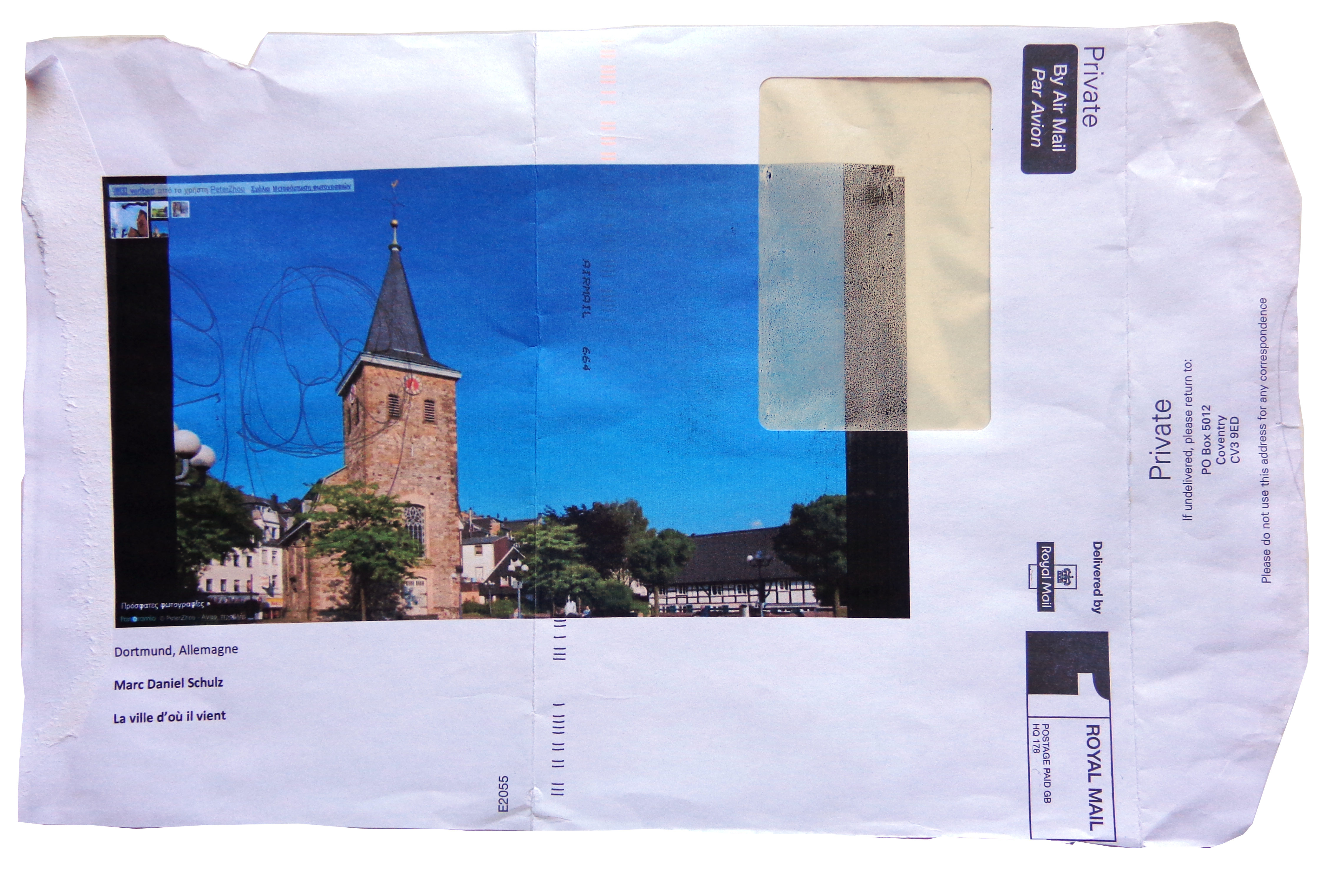 Matériaux: Impression numérique d’image de Google Street View sur enveloppe