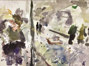 - Αναστασία Ζωή Σουλιώτου, Λίγο πριν κλείσουν οι πόρτες, ακουαρέλα, 50 εκ x 70 εκ, 2007