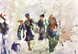 - Αναστασία Ζωή Σουλιώτου, Ένστολη γυναίκα στο Αττικό Μετρό, ακουαρέλα, 100 εκ x 70 εκ, 2007