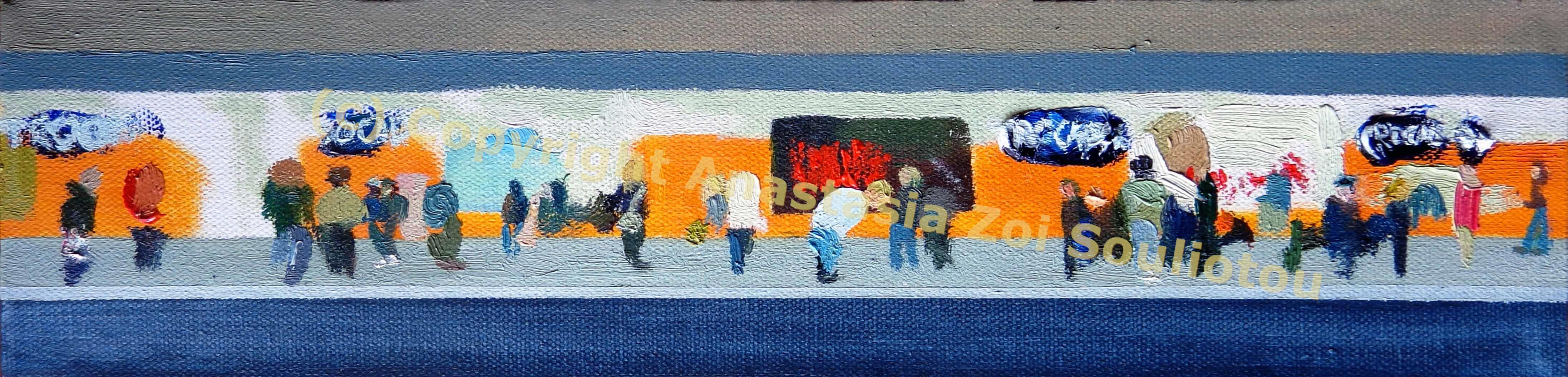 Anastasia Zoé Souliotou, Trilogie des Métros – Métro de Paris, huile sur toile, 40cm x 10cm, 2013
