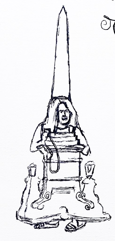 In the artwork Wear the City and You Will Become Its Dress! (2025) the female figure in the image above wears the Fountain of Thessaloniki and in this way she carries its aesthetics and history. She also holds a smartphone with hands-free headphones, which is nowadays a basic means of communication.
